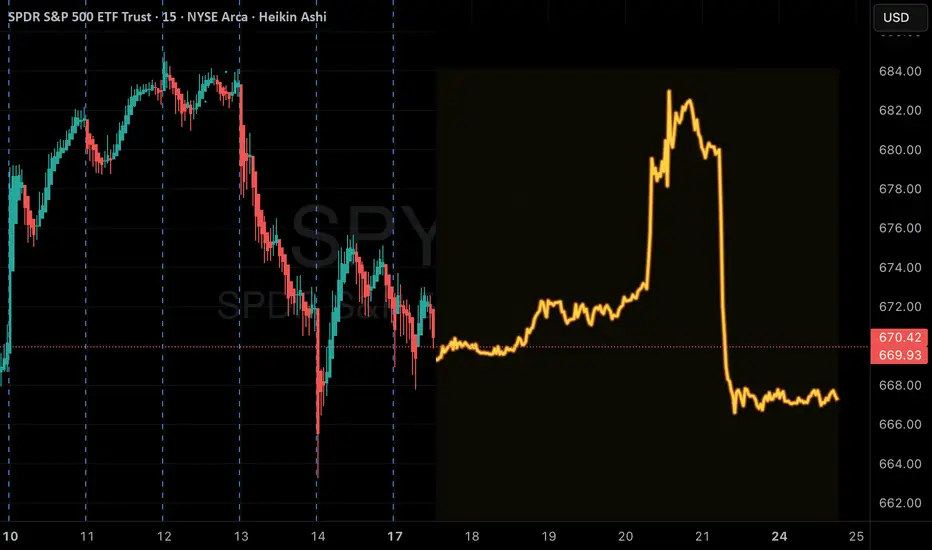 SPY is primed for a late-day reversal: morning weakness, midday relief rally, then clean afternoon fade. Best setup is a tight PUT entry at the peak zone ($676–678) with targets aligned to Katy’s projected closing drop.