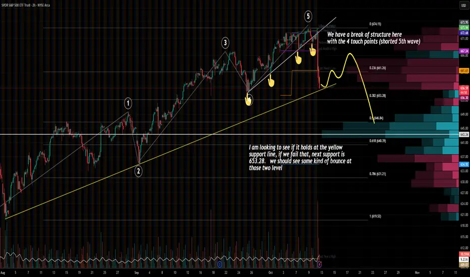 We would like to see a bounce then retest the yellow line and entry on the 2nd bounce.