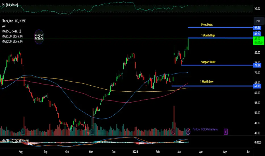 SQ) was up by 6.7%, with a Relative Strngh Index (RSI) of 70 (