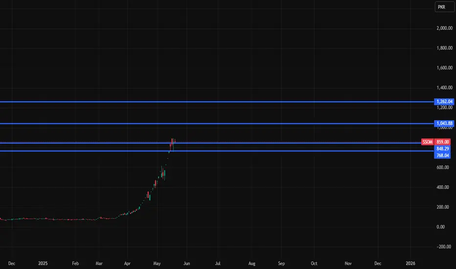 Key levels for SSOM are 768, 848, 1043 and 1262. May be after crossing 1262 it could move to 2000 and above levels.