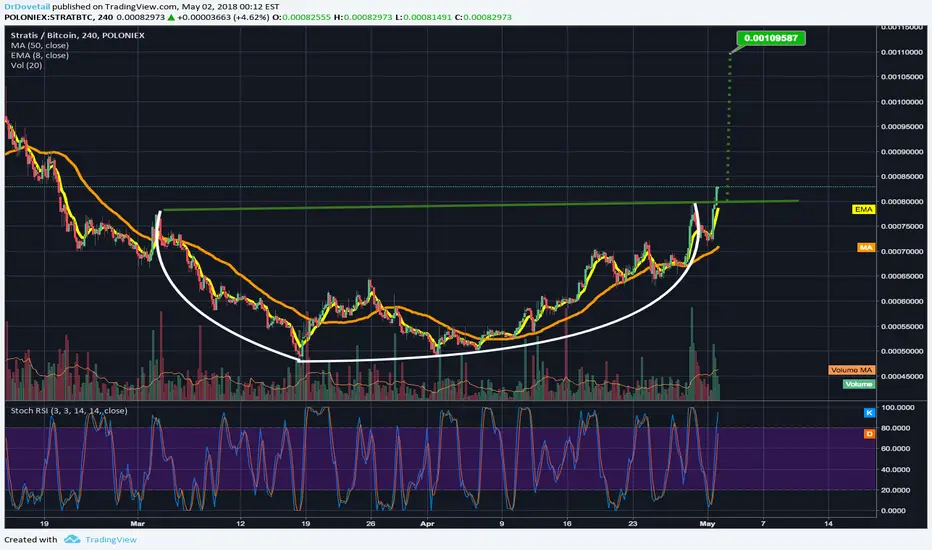 Looking to the left of the cup we can't see any obvious higher points where a deeper cup could forms o there's good chances this is a legitimate cup and handle breakout...we will have to see how it behaves in the enxt couple 4hr candles to be sure but now is still a good entry point...especially if it's valid...if not you will be able to tell relatively soon by lack of a bullish volume boost over the next 2 hr candles...at that point it may still be forming the cup but jusging by the left side of this cup it's unlikely that the cup hasn't already been formed.
