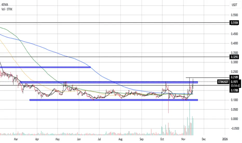STRK has been stuck inside a very long, flat accumulation range for months, and it is now finally breaking above the key resistance zone.