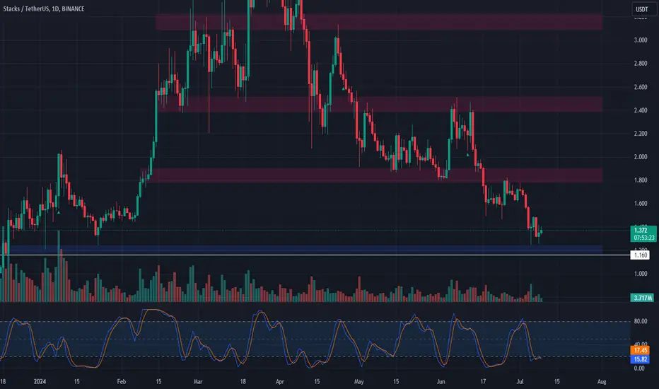 STX has shown a significant rally of 200% the last time it touched this support level. With the price forming a double bottom and BTC expected to rally, this presents an opportunity for both a spot position and a shorter-term trade.
