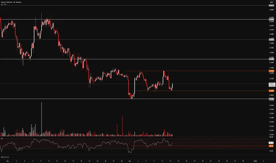 STX is in a clear downtrend on the monthly, weekly, and daily charts. On the 4H timeframe, it has formed a small consolidation zone. A breakout in either direction can create a tradable setup from this consolidation.