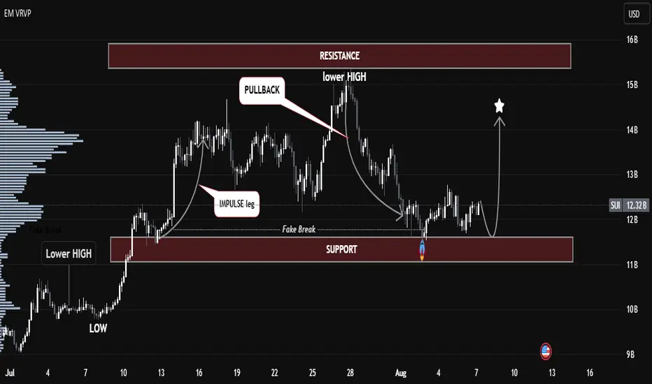 The current SUI/USDT structure highlights a textbook Smart Money accumulation phase playing out at a key support zone, following a clear impulse–pullback–lower high formation.