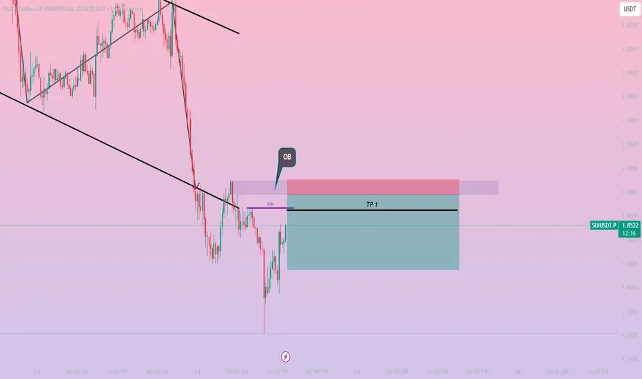 Price is moving inside a clear descending structure, respecting lower highs and lower lows. The previous impulsive drop created a fresh Bearish Order Block (OB) on the 15m timeframe.