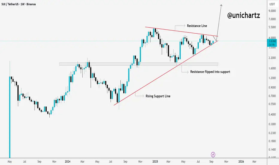 Right now, SUI is sitting at the apex of the triangle. A breakout above resistance could open the door for a sharp move higher, while losing that rising support would mean buyers need to regroup at lower levels.