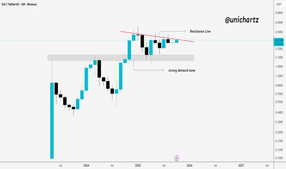 SUI is holding firm above the demand zone near $2.2, showing solid buyer interest. Price is now testing a descending resistance line that has capped previous rallies.