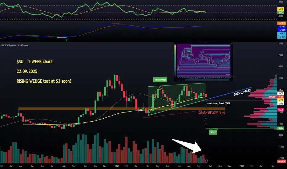 #SUİ is still a touch above the yellow (50 MA) line, and key levels to watch are the $3 mark (breakdown level) and the blue rising support. We really don't want to lose any of these levels.