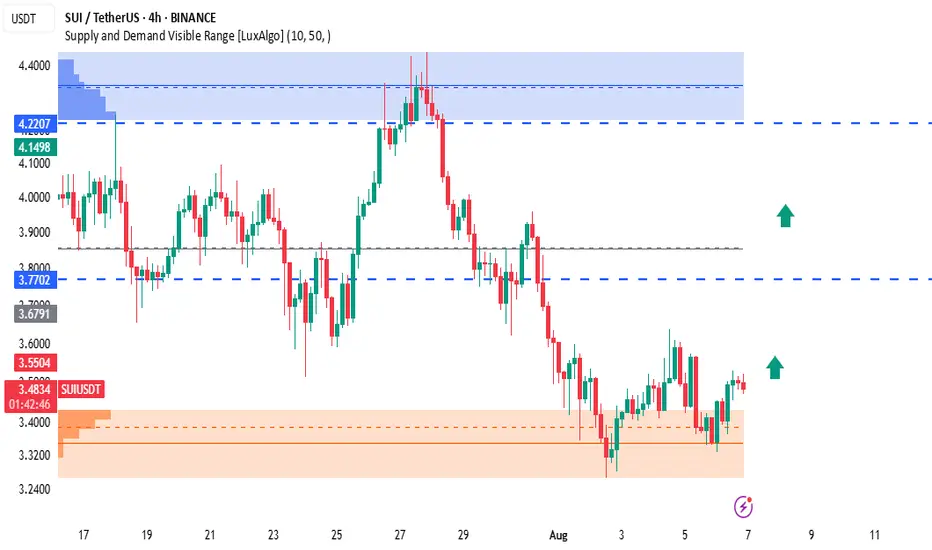 SUI is showing early bullish momentum after rebounding from a solid demand zone between $3.24 – $3.40. Buyers are defending this zone strongly, and price is now forming a higher low on the 4H timeframe, signaling potential upside continuation.