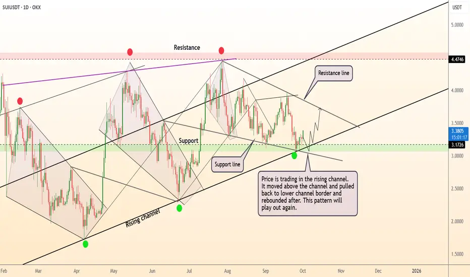 ● Long SUI: buy pullbacks above trendline support; target the channel top / prior highs; watch the last swing low as a stop. Potential boosted by ecosystem growth noted in recent Yahoo/FxStreet reports.