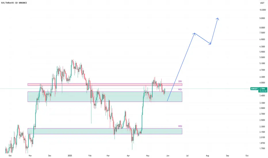 SUIUSDT is very bullish. I think this is just a pullback on this upward journey that it started at the begninning of april 2025.