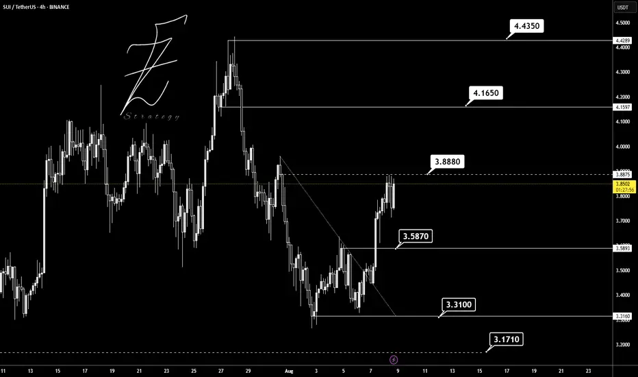 SUIUSDT if breaks above 3.88 $ and reach to 4.16 and 4.43 as the next target.