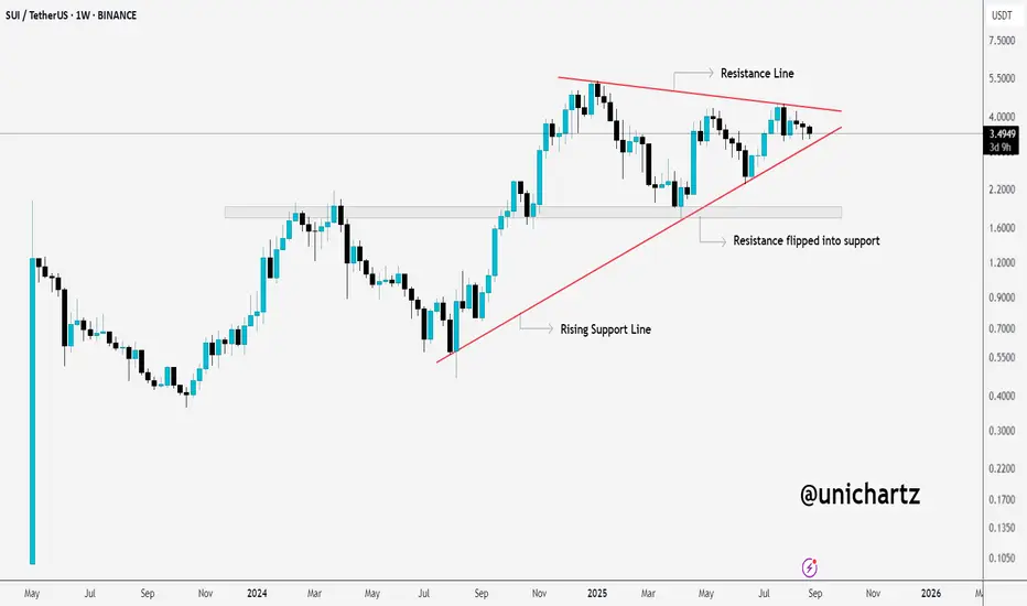 What’s notable is that a key resistance zone has now flipped into support, which gives bulls a solid base to defend. As long as SUI holds this rising trendline, the bias remains bullish.