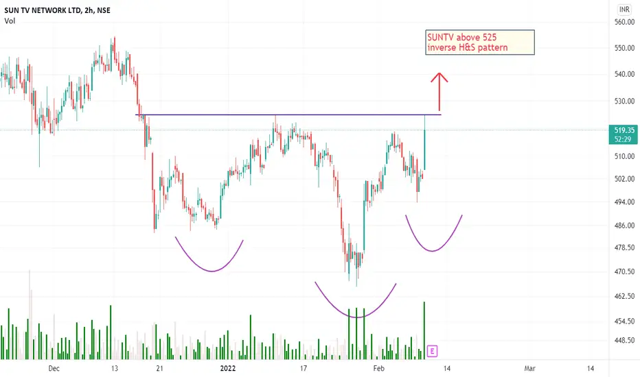 SUNTV above 525 should give inverse Head & Shoulder pattern.We are keeping on radar SUNTV 530 CE.