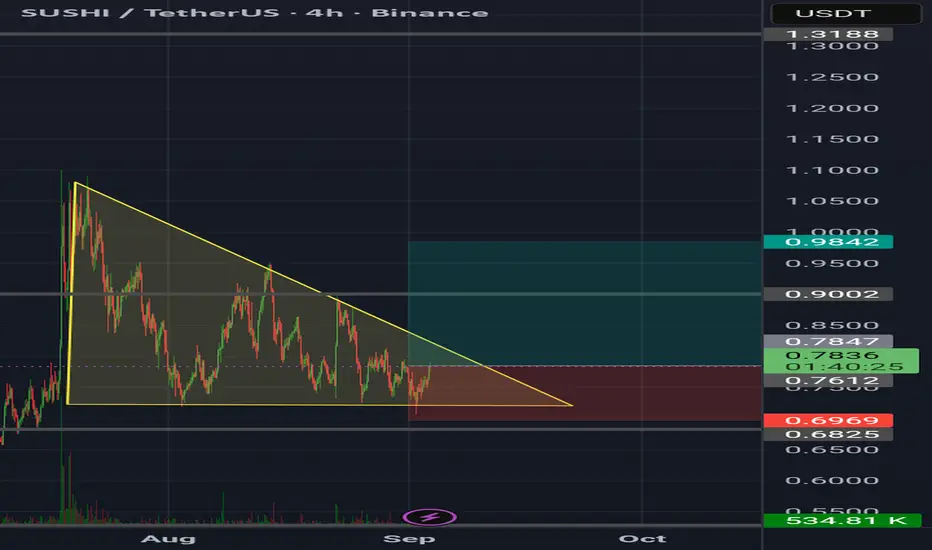 Sushi, as you can see in the chart, is trapped inside a yellow triangle.