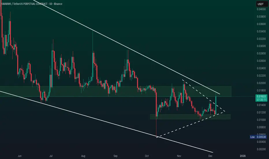 SWARMS smashing out of its long-term downtrend on the higher timeframes, technicals firing on all cylinders with pure bullish conviction. This isn't some weak fakeout, price action is screaming reversal potential, but only if technicals backs it and no higher resistance caps the move. Eyes locked, size controlled, risk managed or sit this one out before it turns on the late crowd