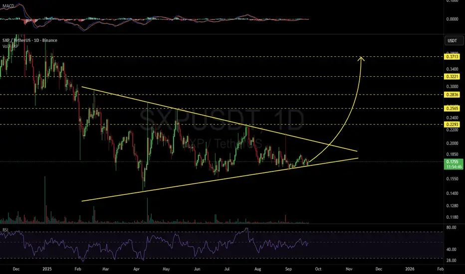 #SXP is moving inside a symmetrical triangle on the daily chart. In case of a breakout above the triangle resistance, the potential targets are: