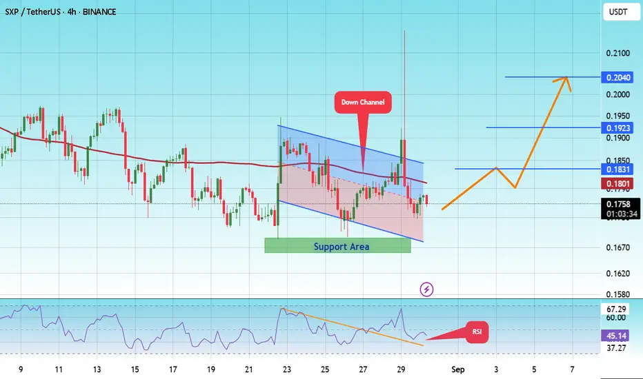 There is a major support area (in green) at 0.1640, which represents a strong basis for the upside.