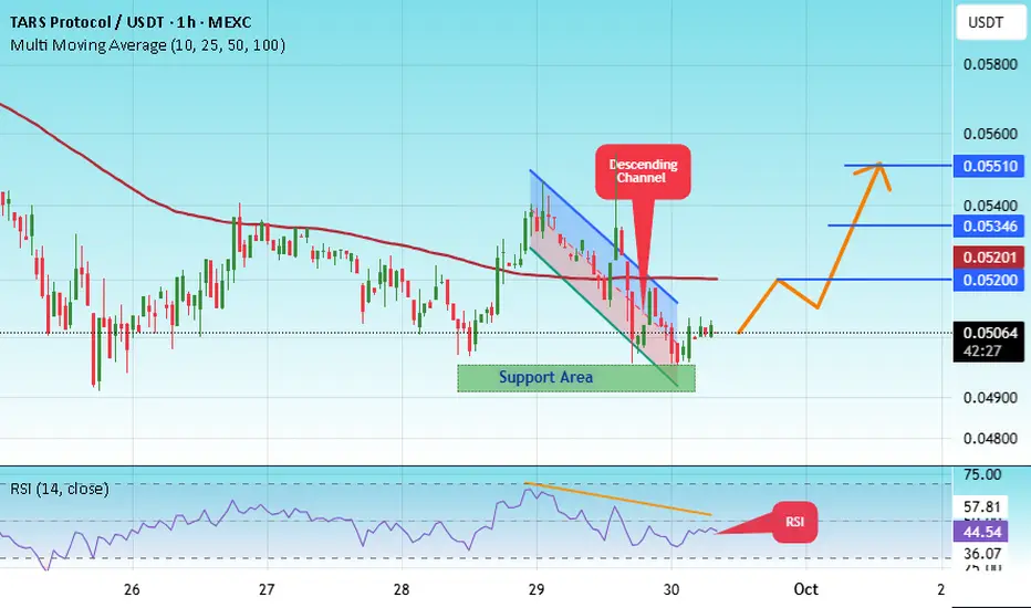 There is a major support area in green at 0.04962, which represents a strong support point.