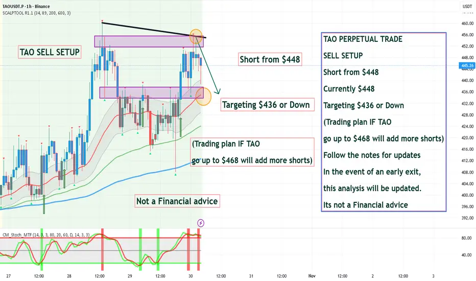TAO PERPETUAL TRADE SELL SETUP Short from $448