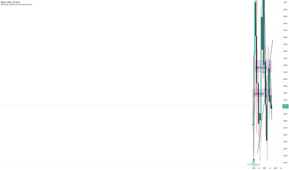 Simple chart of TAO on this particular timeframe to be able to infer further analysis for technical mentors