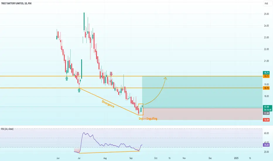 This chart for Treet Battery Limited (TBL) shows a potential bullish reversal after a downtrend: