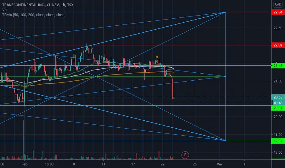 TCL.A no longer trapped, unfortunately it broke to the downside. Look for support at the the 20.31 level with resistance being the 200 now (orange). With earnings coming up, hope for a good report to get momentum back to the upside.