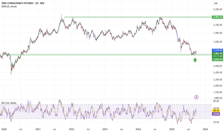 tcs is also retresting its spot right now , even RSI indicator have divergence in it as well ,chjances are we can go long in it , and hold till far far expire , with small stop loss