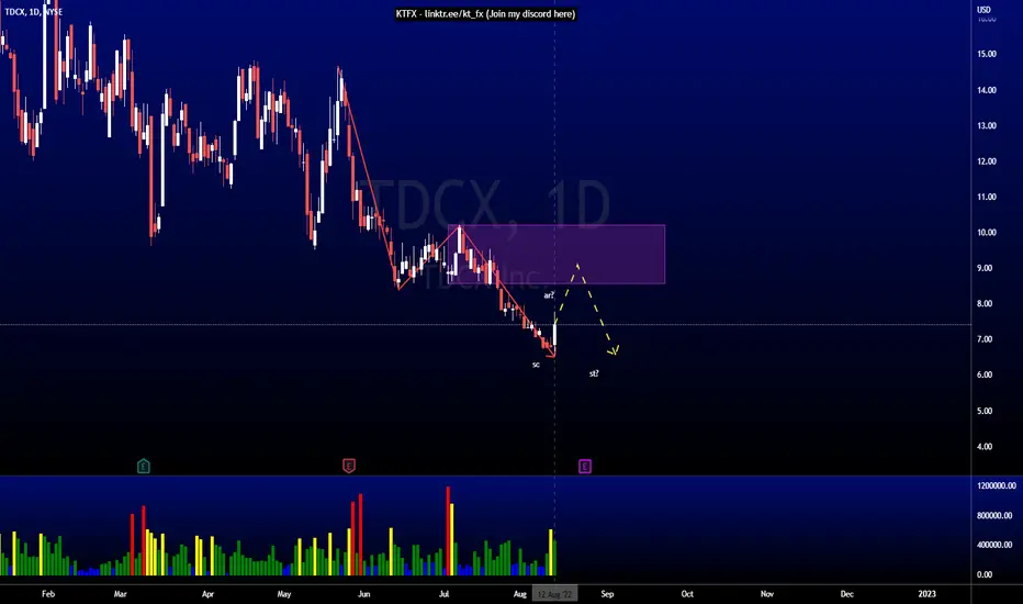 Price is on a downtrend. We have the first sign of a change of character with volume increasing but the price is unable to push lower. Subsequently, we see price pushed higher strongly on 12 August. We could be looking at the start of a Wyckoff accumulation schematic with the selling climax in place. I'm expecting price to go higher to mitigate the bearish POI at 8.56 next.
