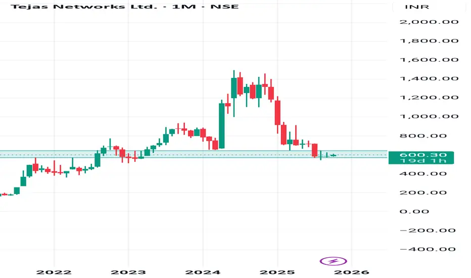 TEJASNET at ₹601 trades at 2.75x book (₹211), down 59% from highs on Tata Group sell-off, but Q1 loss temporary (project phasing). Order book ₹8.5K Cr + IMC 2025 launches (Ojas64 MIMO) signal 5G ramp-up. Indigenous 4G stack (100K BSNL sites) unlocks exports; PLI tailwinds ahead of Oct 17 results.