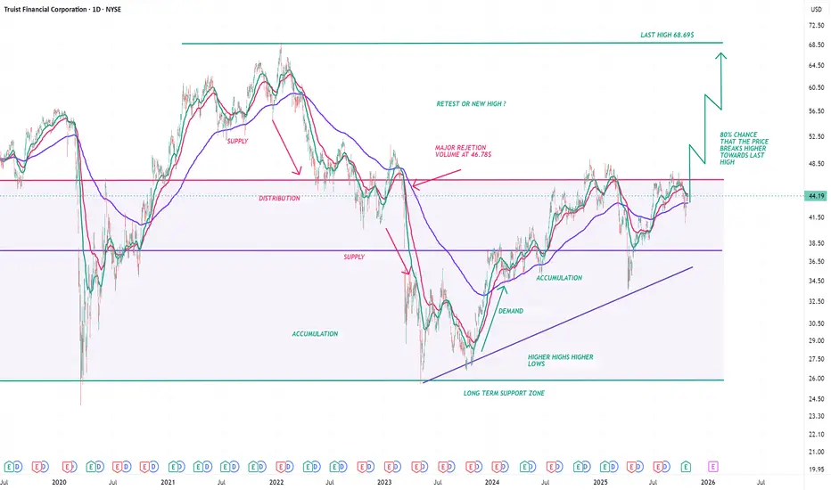 Short-Term Price Movement: StockInvest.us, based on trends up to October 24, 2025, expects TFC to continue moving within a wide, horizontal trend over the next three months, likely trading between $40.76 and $46.54. The stock rose 1.33% on the last trading day, closing at $44.19.