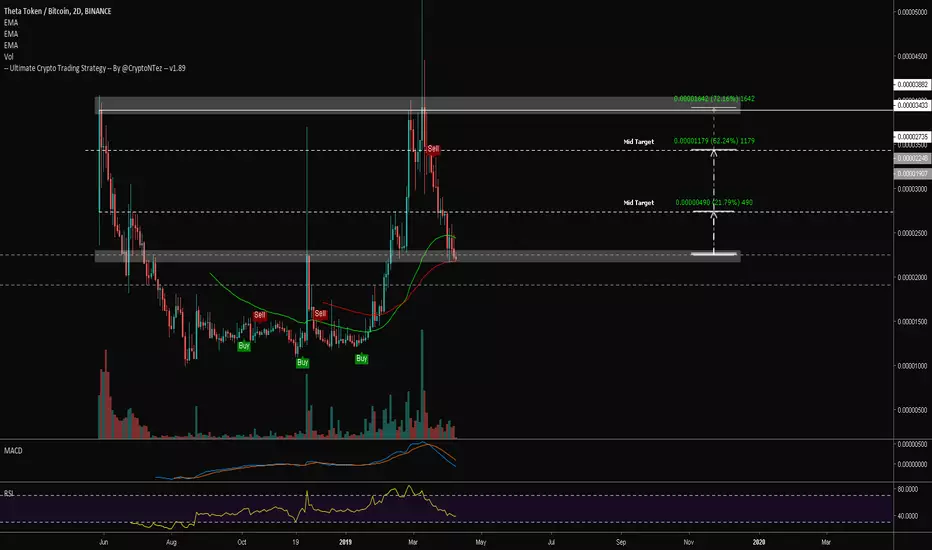 THETA Reached a good support level at ~22k sats... Sitting over EMA200