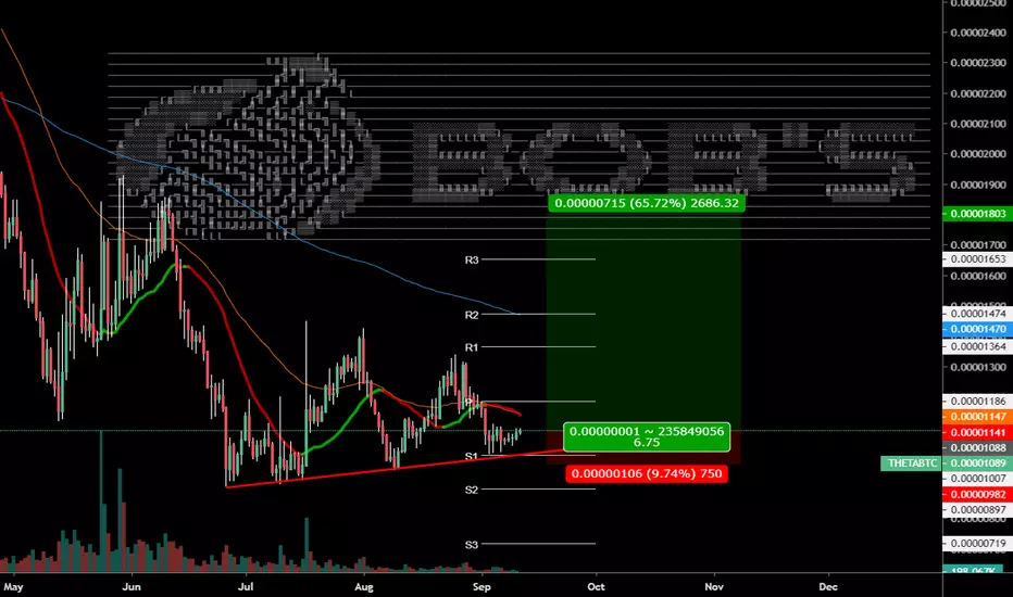 Taking a position on Theta. We can see Lower Highs and Higher Lows. With declining volume in combination with declining dominance, I'm expecting a bull break on this.