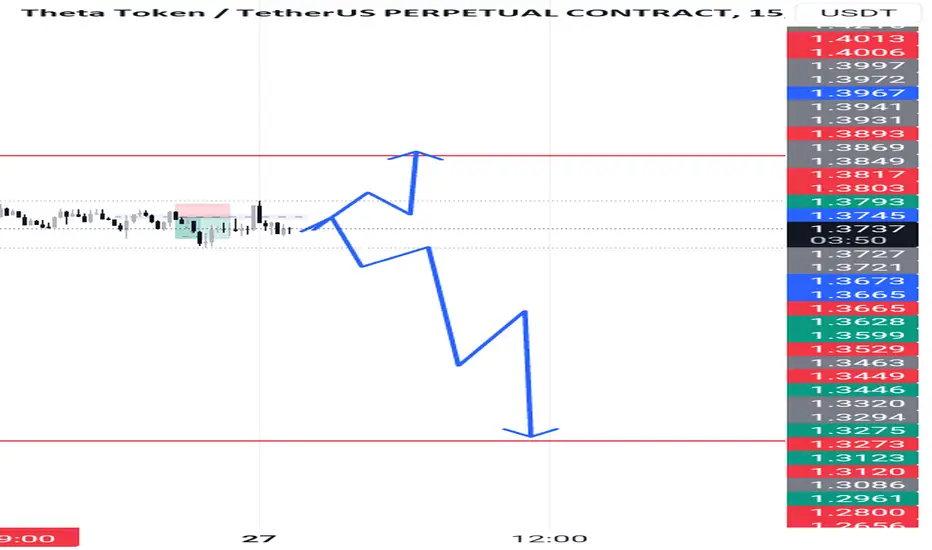 I guess Theta is following the path of bitcoin and if bitcoin drops it is gonna be a heavy bearish price for this coin , it is on the daily order block i& it can go on both side from this level