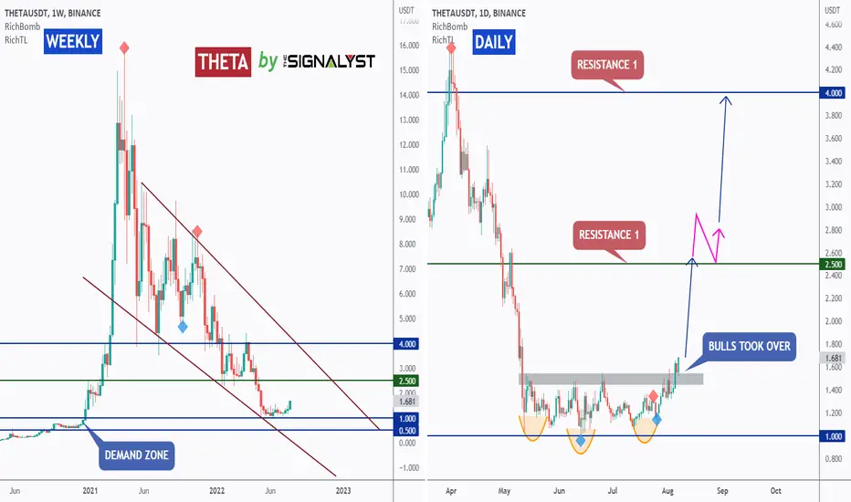 on DAILY: THETA formed a valid inverse head and shoulders and the bulls took over after a momentum candle close above the gray neckline.