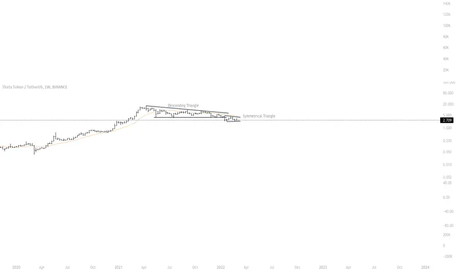 now there is a symmetrical triangle forming which could lead to the continuation of the bearish trend if broken below 2.27 or upwards above 4.05