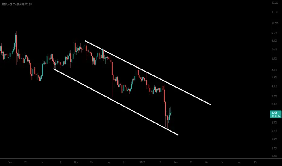 Recently Theta has formed a down channel on a daily time frame and getting bounced form the support of this channel. Now if it breaks out the resistance of this channel then it can re-enter the big triangle back.