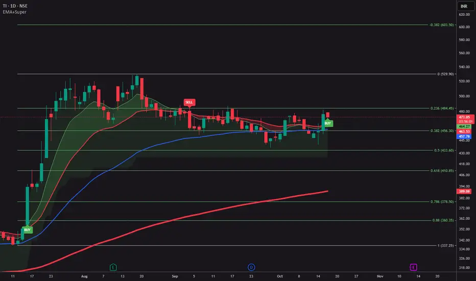 Our indicator has given a buy signal on the daily chart of TI. The entry zone is near 472, the recommended stoploss is at 456, and the target is set at 603.Probably giving a RR of about 1.:3