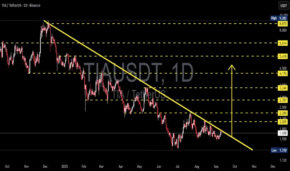 If TIA manages to break and close above the descending trendline with strong daily volume, the probability of a trend reversal increases significantly.