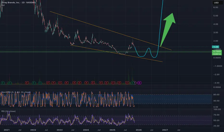 IMO this is a possible scenario for #TLRY, if we don't break the resistance within the next 2 weeks, I see it going back to the support line and later going back. I'm putting some buy orders at 0.65 and 0.55 just in case..