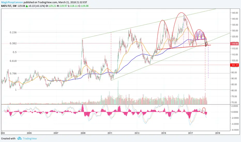 Hi friends! Welcome to this update analysis on the TLT — the ETF that tracks 20 year treasuries! As you know, most of my posts are on cryptocurrencies, but crypto is not where the majority of my investments are. Enter the TLT! I have been bearish on bonds, for several months now, and I've actually been accumulating the Jan 20 100 Strike put contracts. In this update analysis, we're going to delve into the technical, and fundamental reasons why I believe that the bond market is on the verge of a meltdown. Before we get into that, it's important to know straight away, that bonds and interest rates counteract one another. Lately, the fed has been hiking interest rates, at 0.25% a hike, and this has a negative effect on bond yields. You may think that a 0.25% hike wouldn't have a very dramatic effect on reducing bond yields, but I think that theory is very wrong, particularly because interest rates were artificially suppressed by the Fed, after the Great Recession, which inadvertently artificially inflated bond yields. Now that the Fed has to hike rates, the overly inflated bond market should plummet from its lofty heights.