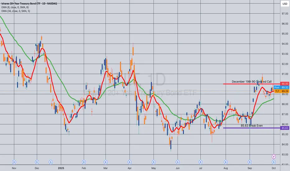 This is a continuation of a long-running TLT covered call setup that I started out in April of 2025 (See Post Below) with my current break even shown which I'm doing an update on.
