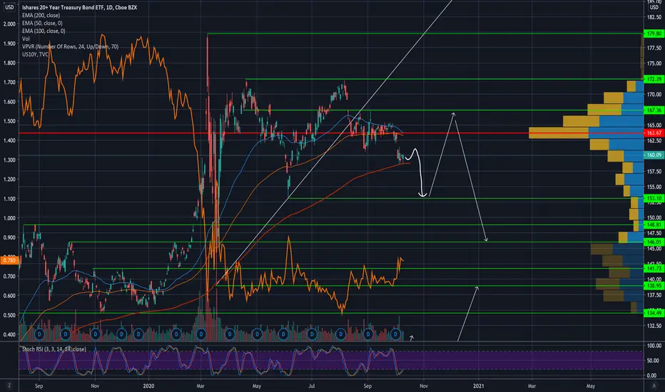 Looking for something like this to unfold heading into elections USA. The orange line is 10 yr Tbonds yields. So they inverse each other. When yields rise so do stocks and exactly the opposite when yields fall.