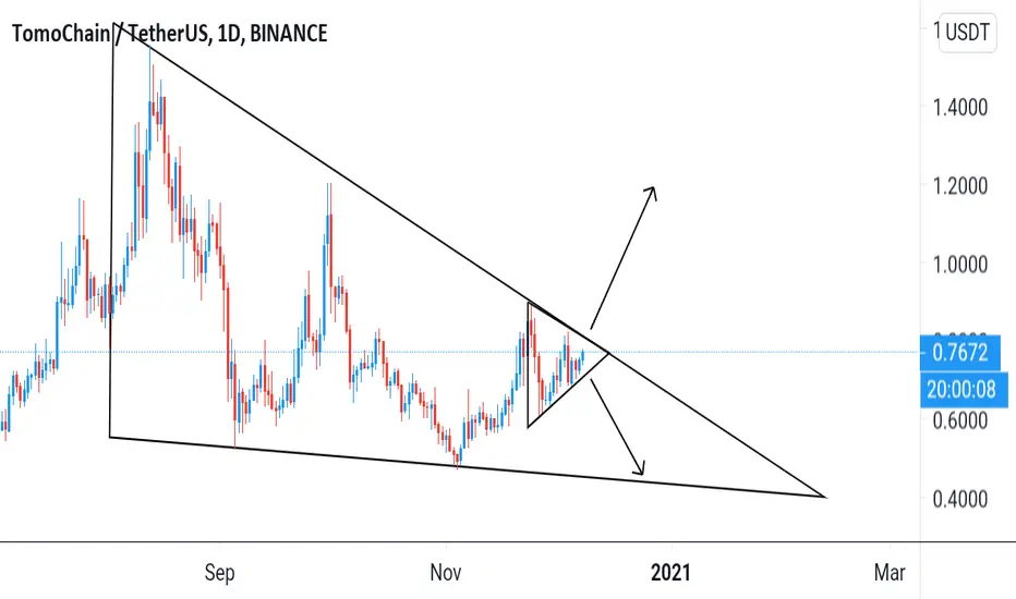 We could see a breakout above the symmetrical triangle + falling wedge resistance as bullish ⬆️ and a breadown below the symmetrical triangle support as bearish ⬇️.