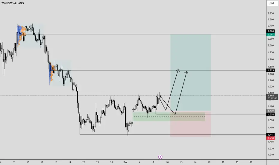 The TON looks pretty long. The structure is good. I expect another test near the local low. Ideally, we should break through the low and rise!