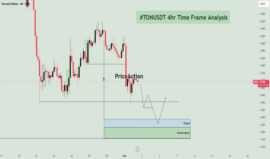 📉 TON/USDT 4H: Anticipating Continuation Short Towards Unmitigated Demand