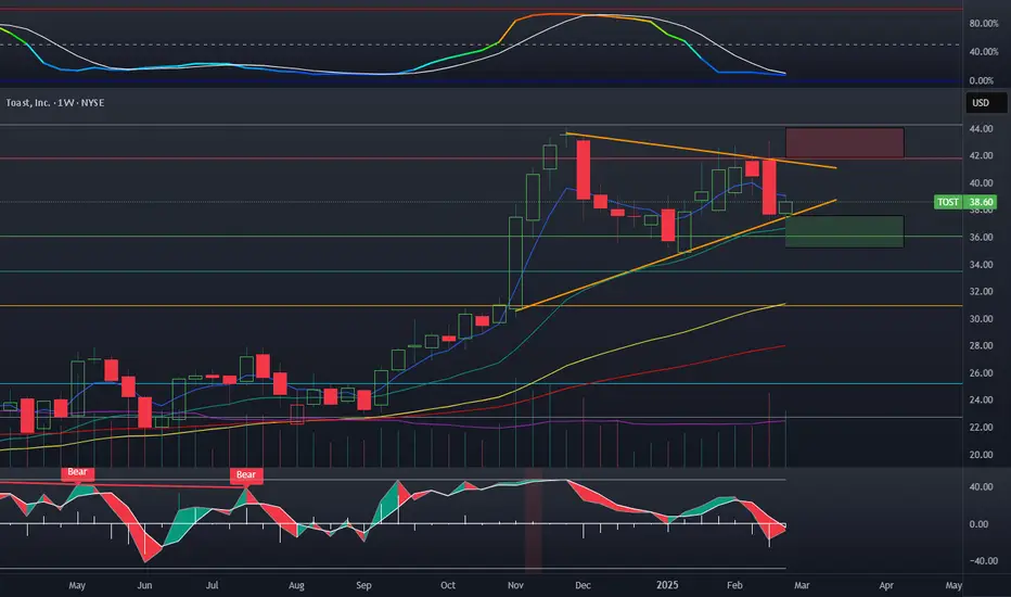 TOST had a nice fakeout and then dump as the market pumped and dumped tech stocks. This stock fell right back into the wedge and is still setting up bullish imo. This dump allowed for a nice reset of BBWP and momentum, just what the doctor ordered. I would say we are back in the buy zone here. I have added supply and demand zones here.