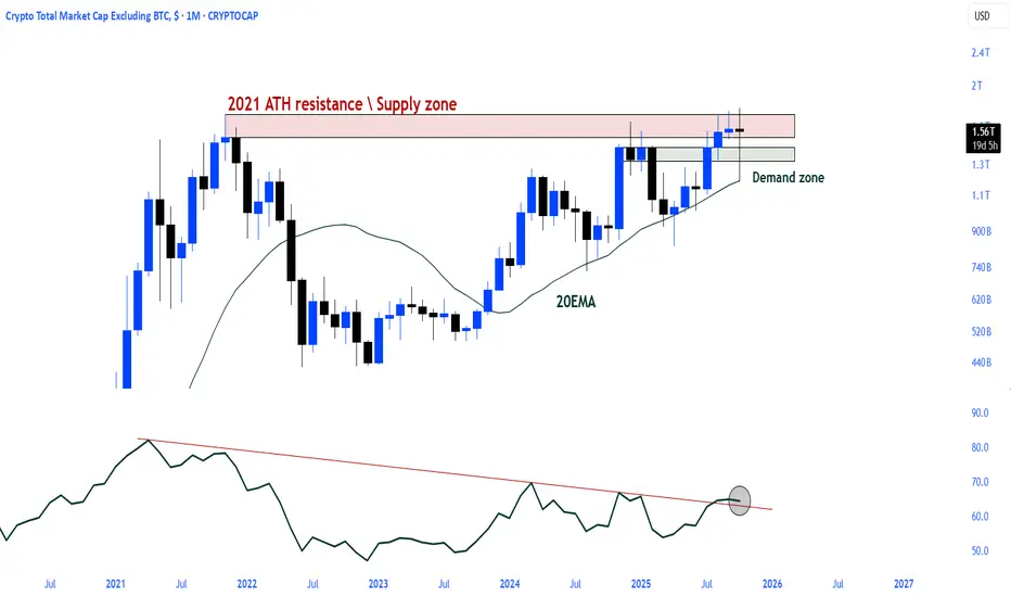 The 2021 ATH resistance and major supply zone were tested in November 2024 but rejected. Following this rejection, the market entered a broad correction phase.