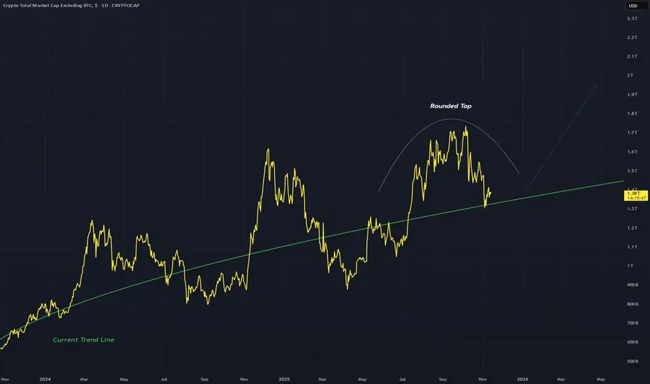 Drawn a trend line in green which i suspect to be respected following this rounded top structure and a breakout to the upside coming